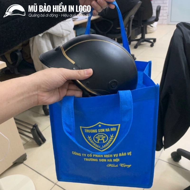 Nâng cấp hơn so với túi nilon, túi vải đựng mũ bảo hiểm làm từ chất liệu vải không dệt mang lại nhiều giá trị hơn hẳn. Túi được may chắc chắn, có quai xách tiện lợi, giúp người nhận dễ dàng mang món quà đi lại.