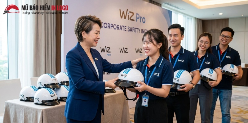 Trang bị mũ bảo hiểm đồng phục cho đội ngũ nhân viên, đặc biệt là các bộ phận thường xuyên di chuyển ngoài đường như sales, kỹ thuật, giao hàng. Việc này không chỉ đảm bảo an toàn cho nhân viên mà còn tạo ra một hình ảnh chuyên nghiệp, đồng bộ và gia tăng nhận diện thương hiệu một cách tự nhiên.