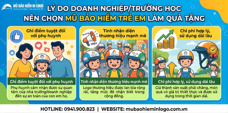 Trong vô vàn lựa chọn quà tặng, mũ bảo hiểm trẻ em in logo luôn nổi bật nhờ những giá trị thiết thực và bền vững mà nó mang lại. Đây là một khoản đầu tư thông minh cho cả sự an toàn của trẻ và hình ảnh thương hiệu: