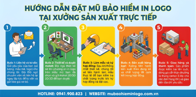 Hướng dẫn đặt mũ bảo hiểm in logo tại xưởng sản xuất trực tiếp